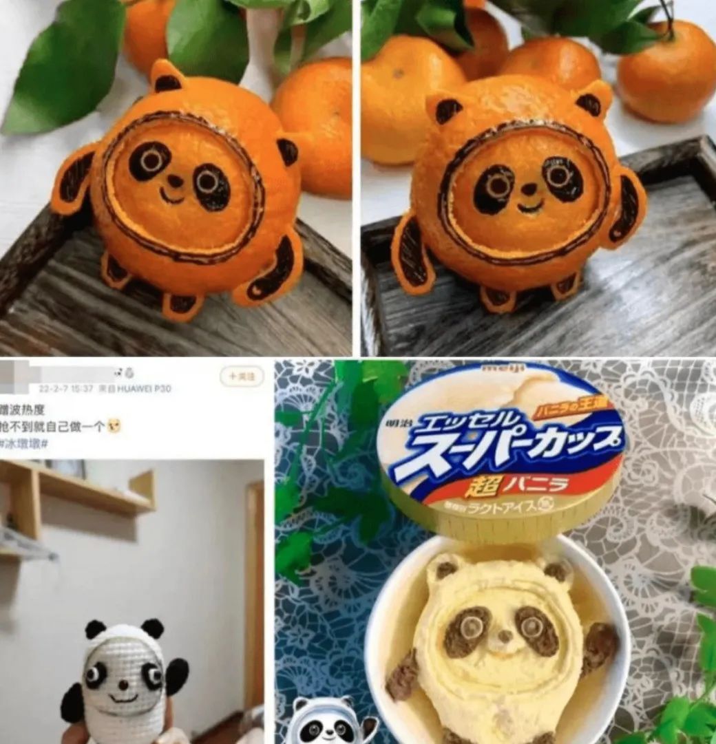 除了在產(chǎn)品設(shè)計(jì)上下功夫,冰墩墩的對外宣傳也同樣采用了“熟悉+驚喜”的流行密碼。在直播奧運(yùn)賽事時突然掀開外套展示自己購買了6個冰墩墩掛件的日本記者、將古典音樂加入歌詞制作了《冰墩墩之歌》的抖音用戶、用各種各樣的材料制作冰墩墩形象的網(wǎng)友等為冰墩墩的形象不斷制造傳播“驚喜”的傳播者們,也讓冰墩墩不斷給用戶帶來了新的看點(diǎn)、新的印象。
