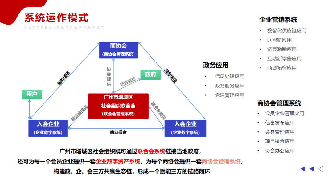 開利網絡在本次主題研討會上提出,廣州市增城區社會組織聯合會的“數智化”將圍繞商協會、企業、政府三者之間的互鏈互通、資源共享進行,開利網絡將以區塊鏈底層技術應用為核心,助力增城區社會組織聯合會搭建“數智化社會組織系統”,全力打造一個數智化、信息化、智能化的政企會三方共贏生態鏈。
